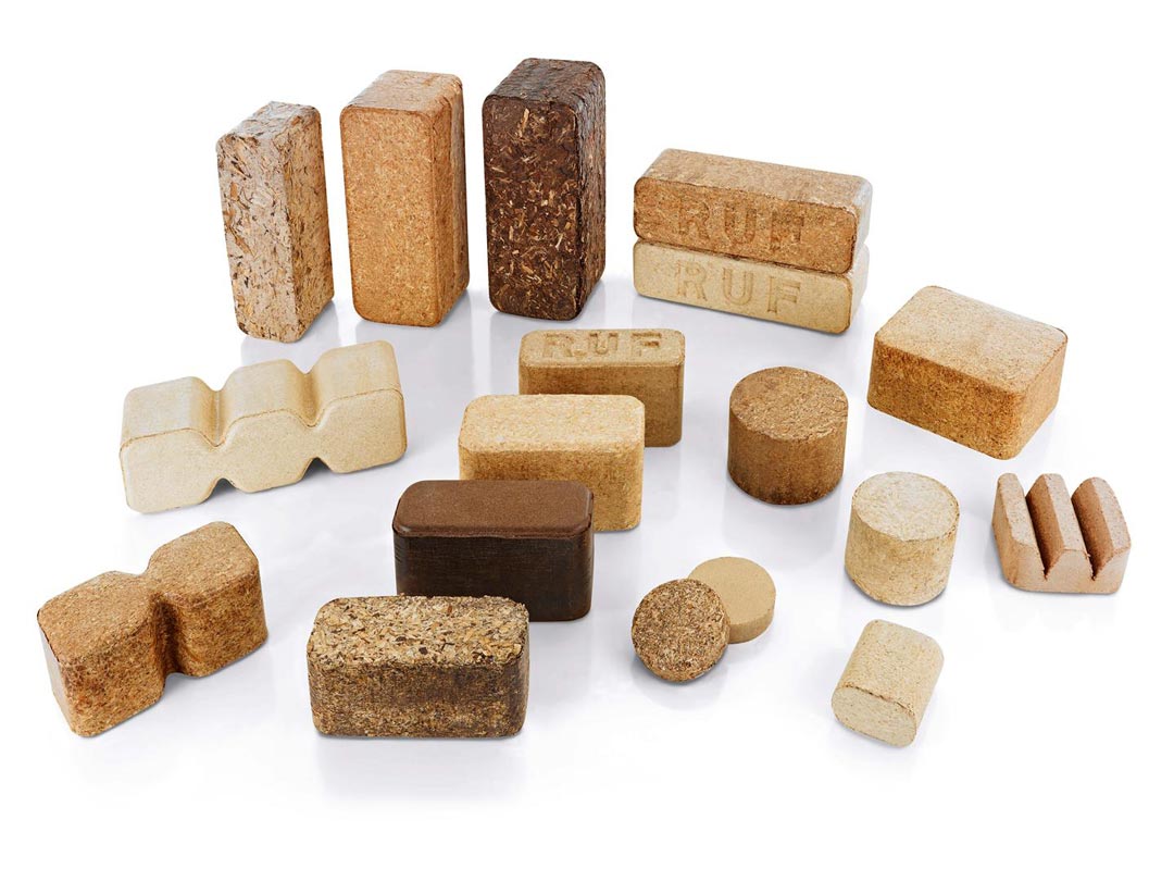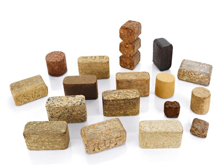 Les anas de lin, les coques d’arachides, le café et de nombreux autres coproduits sont également briquetés, seuls ou en mélange, et transformés en combustibles.