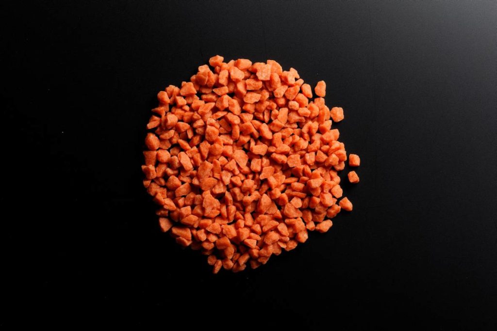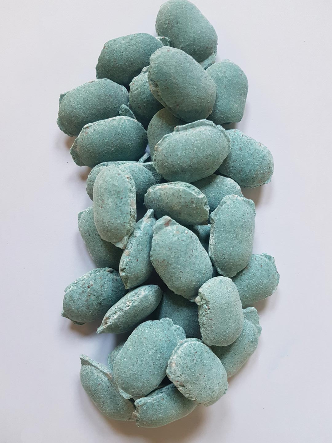 Granules can be formed with premix mineral feed for animals (calcium carbonate, vitamins, pigments, etc…)