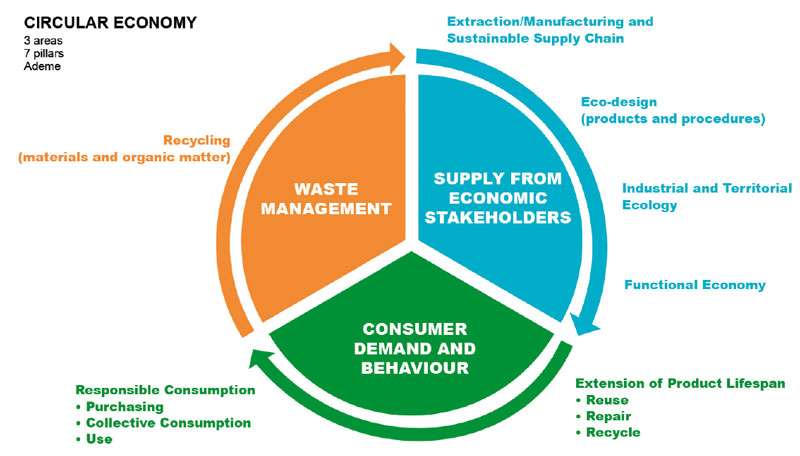 Also, if we look at the pattern of circular economy gave by ADEME, we can see that Euragglo and agglomeration in general, are involved in several of the main pillars of this model: